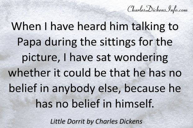 When I have heard him talking to Papa during the sittings for the picture, I have sat wondering whether it could be that he has no belief in anybody else, because he has no belief in himself. ~ Little Dorrit