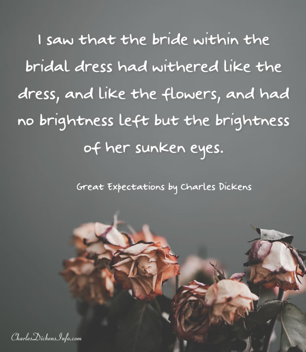 I saw that everything within my view which ought to be white, had been white long ago, and had lost its lustre and was faded and yellow. I saw that the bride within the bridal dress had withered like the dress, and like the flowers, and had no brightness left but the brightness of her sunken eyes. ~ Great Expectations